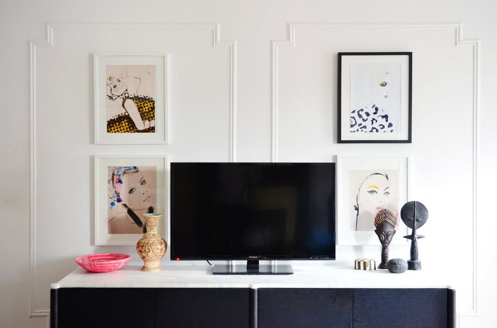 把電視後牆面當成一個畫廊角落,擺上你喜歡的裝飾品、全家福照、孩子或情人的畫作,讓電視的四個邊框也成為一幅躍動的景色,有如畫廊般的佈置,讓家更有風格。