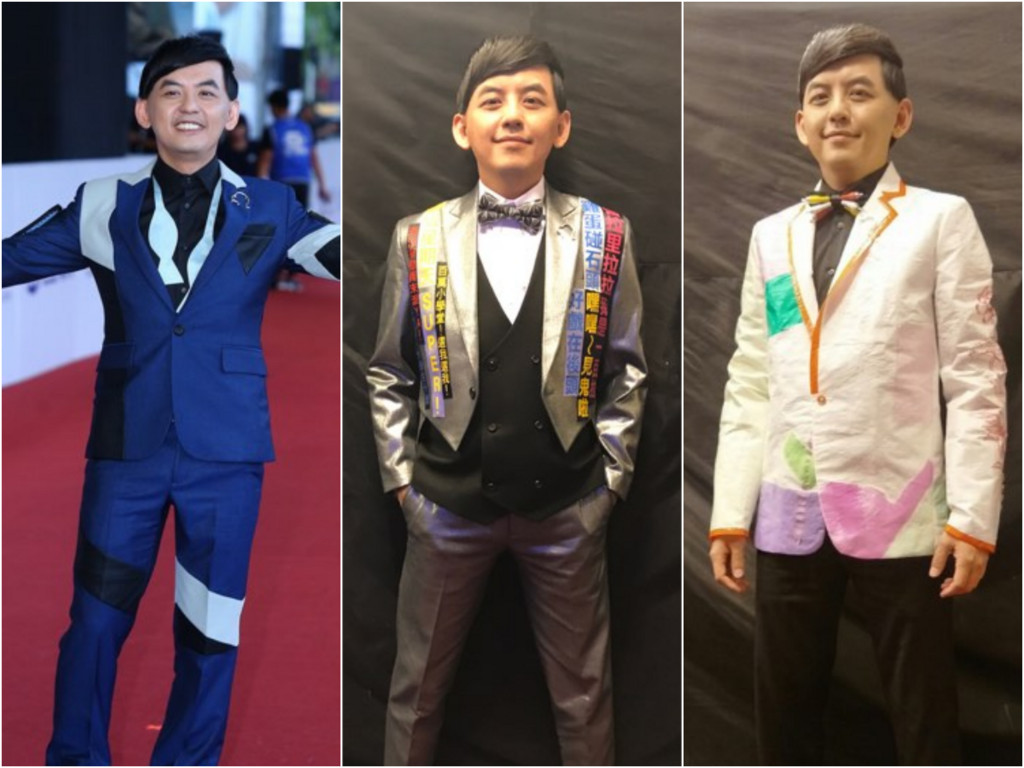 在典禮中以一套SENSEMAN 西裝手工訂製西裝,搭配黑色長背心,並以黑色帶出層次感,最特別的是置入經典綜藝節目的標語,不但讓觀眾懷念起經典節目帶來的快樂時光,也顯示出輕鬆獨特的氛圍。