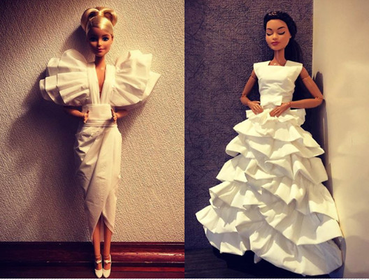有很多的芭比收藏家,都會發揮創意,幫心愛的娃娃,設計出專屬服裝。但你有看過,用餐廳餐巾紙,也能做出華服的嗎?新加坡的男性芭比收藏家Jian Yang辦到了,不但讓廢紙物盡其用,美麗的服裝,也讓人大飽眼福。