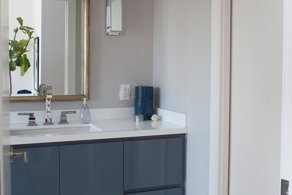 選擇一個夏天的顏色,並漆上廁所的置物櫃門板,也是改變整體空間氣氛的好方式,無論是清爽的藍,或是清新的綠,亦或是淡色的粉紅,不但能凸顯妳的喜好,也能在每天早晨梳洗時心情更好,若妳覺得油漆還是太麻煩,只要找到相同規格的門板換上,就能加速整個處理速度。