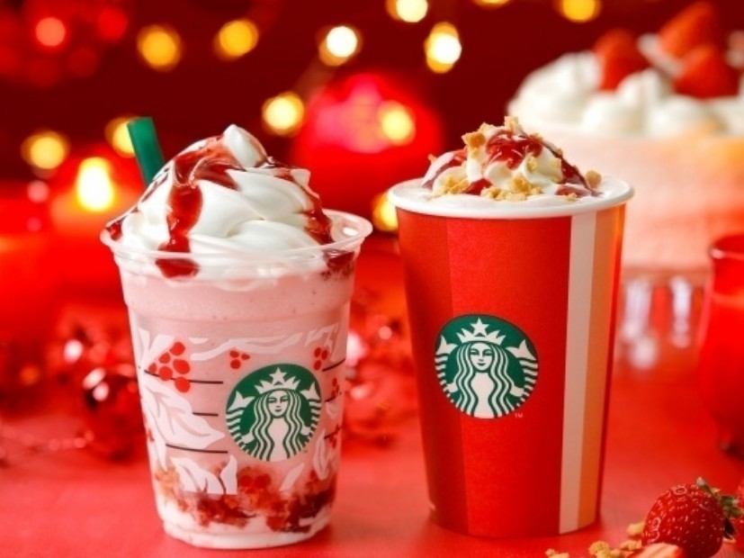 季節限定飲品第一彈為「聖誕草莓蛋糕星冰樂クリスマス ストロベリー ケーキ フラペチーノ」與「聖誕草莓蛋糕牛奶クリスマス ストロベリー ケーキ ミルク」。以日本人在聖誕節定番享用的草莓蛋糕為靈感,將鮮紅的草莓搭配大量鮮奶油,甜點般的口感讓人聯想起和戀人共度聖誕節的幸福心情。