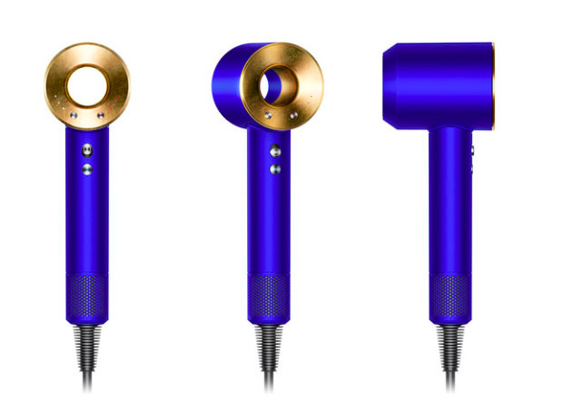 由品牌創辦人James Dyson親自設計的金箔限定版,選擇金色與藍色作為對應色,並在吹風機外圈使用23.75K金進行裝飾,雖然只是畫龍點睛的一筆,但豪氣感已經到位,與亮藍色的搭配凸顯出金的光澤,也是獨特的配色選擇,單支售價17,600,新品上市特價16,200元。