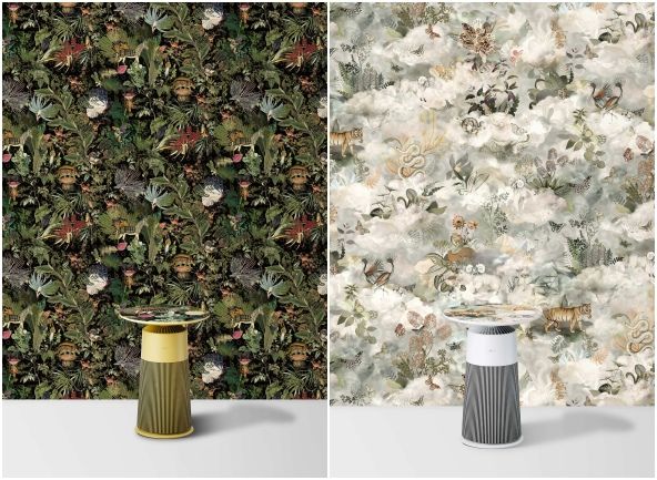 以空氣清淨機變身藝術品的概念,Moooi為新淨几設計了三款獨特圖騰,分別是「失落動物的追憶」、「七星瓢蟲」和「失落動物的追憶烏鴉園」,將斑馬、老虎、瓢蟲等動物與花卉元素巧妙結合,呈現出充滿生命力的視覺效果。