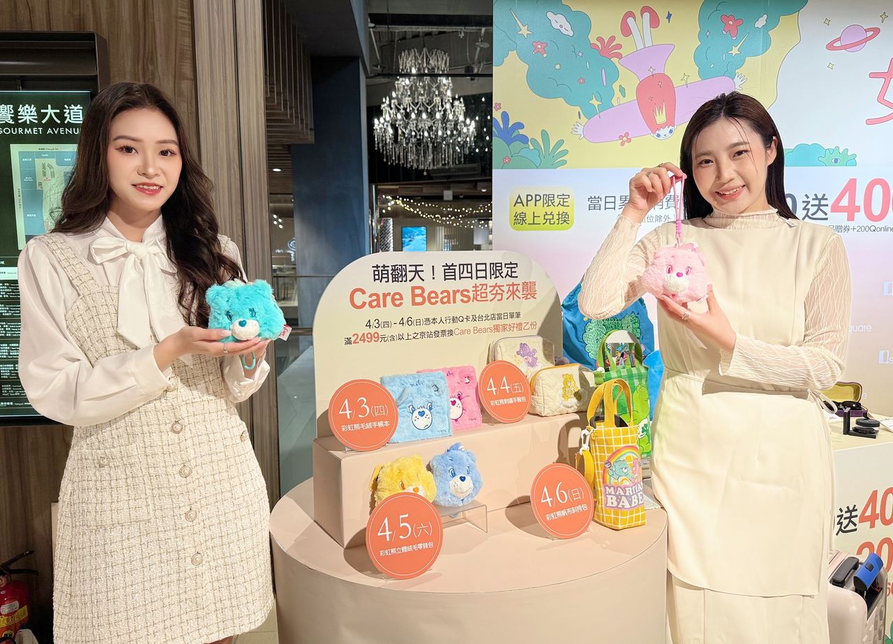活動首四日(4月3日至4月6日)針對Q卡友,憑台北店當日單筆消費滿2,499元發票,還可兌換超人氣 Care Bears 造型商品,包括彩虹熊毛絨手帳本、刺繡手腕包、立體絨毛零錢包與帆布斜挎包都超可愛,每日限量300份兌完為止。此外,京站另推出「週週回門禮」,從4/7起單筆消費滿1,499元,可透過APP兌換聯名帆布托特包、不鏽鋼隨行杯與輕便摺疊椅。