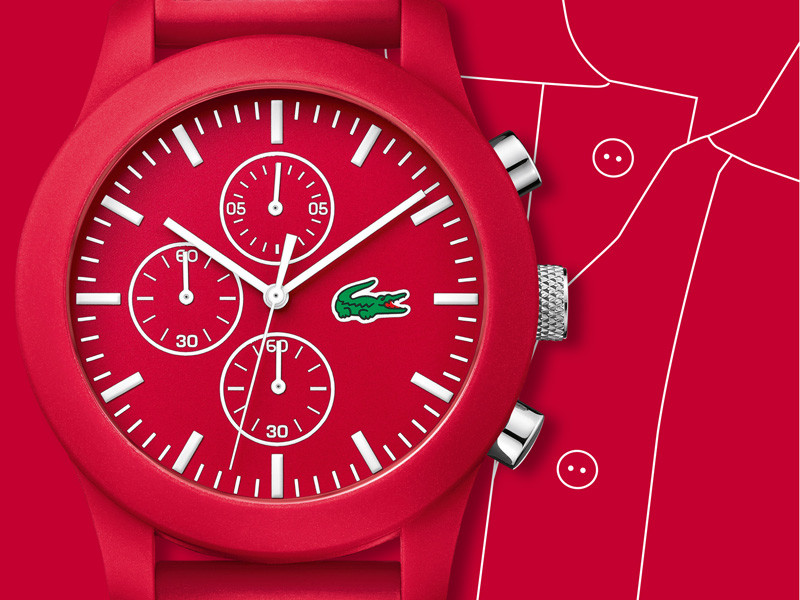 Lacoste 12.12計時碼錶色彩選擇豐富,迎接即將而來的聖誕節,應景的紅色及綠色錶款特別引人注目,另有經典不敗的黑色可選擇;外型簡潔好搭配,與經典POLO衫強烈連結,除了鱷魚LOGO外,獨特的Petit Piqué紋理從錶殼側邊一路延伸至錶帶上,計時碼錶視窗也以白色各別勾勒在紅、綠及黑的錶盤上,受到時下型男潮女的喜愛。
