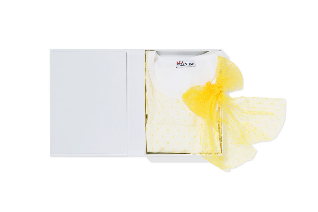 ▲▼REDValentino細點網眼薄紗蝴蝶結T-shirt,搭配書型外盒,送禮自用都有特色,售價NT$11,400元。(圖/品牌提供)