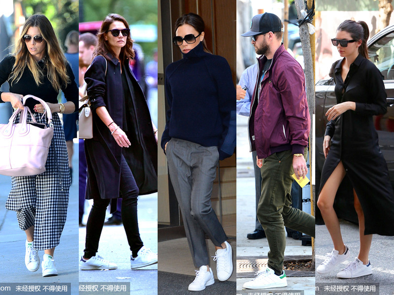 ▲adidas Stan Smith小白鞋,在時尚圈、潮流界都是第一把交椅,包含維多莉亞貝克漢(中)等歐美藝人都愛穿。(圖/CFP,以下同)