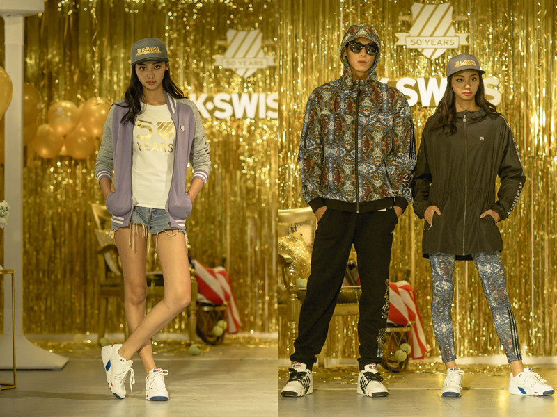此次K-SWISS 50周年派對與G.C.D.C.聯合舉辦,店裝採用大量金色與白色元素,呼應50周年商品設計主色,並首度曝光2016秋冬話題新品,多款潮鞋、獨特棒球外套及星空迷幻印花上衣等單品,處處體現潮流運動思維。