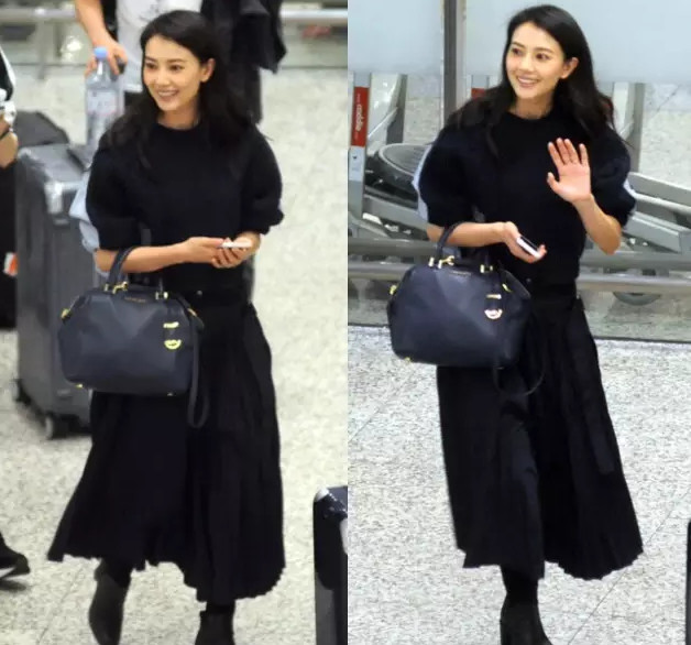 ▲採用不同質料同色搭配,讓高圓圓氣質更好了。