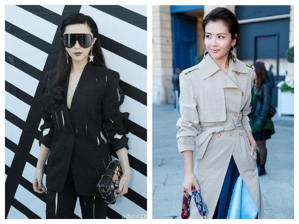 LOUIS VUITTON(LV,路易威登)的時裝周秀場總是星光熠熠,范冰冰(范爺)是老客人,以黑色勁裝亮相,展現爺的不敗氣場,另一廂是幾次穿LV都引來負評、網友說是大媽的劉濤,用風衣和洋裝力搏出位,雖然和范爺還是差了一大截,但起碼比前幾次的自己好很多了。
