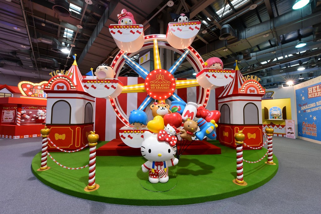 《Hello Kitty Go Aroud!!歡樂嘉年華》特展以美式嘉年華為主軸,劃分了多個不同主題拍照區和互動遊戲攤位,粉絲可自由於展館內穿梭、遊玩,感受嘉年華的歡樂氣氛。各個夢幻場景包括有華麗的旋轉木馬、夢幻摩天輪及充滿兒時趣味的回憶花園等,皆讓入場民眾無一不讚嘆其精緻程度,紛紛搶著與經典場景及各個人氣肖像拍照紀念。不僅如此,主辦單位還與台灣賓士攜手為粉絲帶來額外的驚喜,旗下的知名小車Smart特別為此次展覽換上新裝,明亮的限定設計,讓經典的Smart小車更顯活潑。