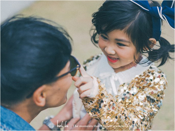 這系列照片當中,石輝還特地親手縫製一件禮服給女兒,一針一線充滿愛。而穿上大紅連身裙的女兒,擺起POSE,絲毫不輸給身為大人的爸爸,展現自然又俏皮的一面。