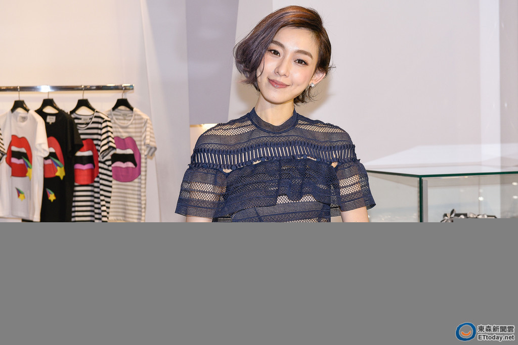▲藝人范范(范瑋琪)穿著Self Portrait身藍色蕾絲鏤空長洋裝,搭配Vita Fede飾品。(圖/記者張一中攝)