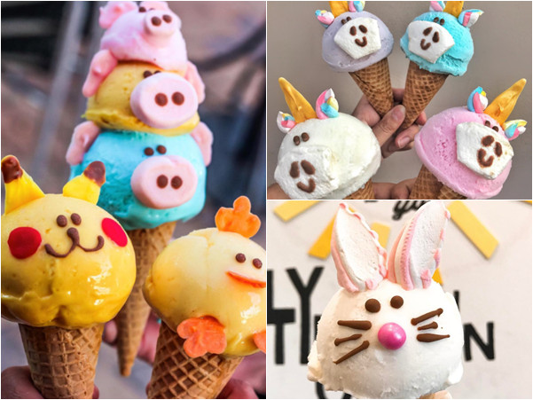 除了動物造型外,還有近期人氣超火紅的萌物,像是精靈寶可夢的「皮卡丘」、時尚icon「獨角獸」、通訊軟體的表情圖案「emoji」都能復刻在冰淇淋上。最特別的是,還可以大玩「疊疊樂」,超級可愛!