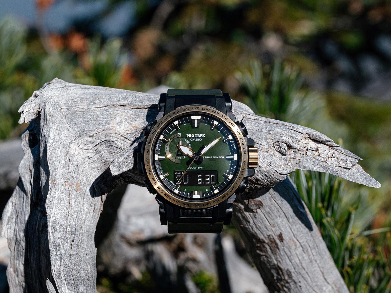 兩款CASIO PRO TREK系列30周年紀念錶均以對環境友善的生質樹脂打造,錶款差異在於PRW-61ANS首度於該系列面盤採用綠色蒸鍍處理,而PRG-340ANS則搭載雙層LCD顯示設計,使數位羅盤資訊更加清晰易讀,功能配置則包含 Tough Solar 太陽能充電系統、三重感應器(數位羅盤、氣壓/高度計與溫度計)及100米防水性能,其中 PRW-61ANS-3 另配備六局電波校時功能,成為戶外探索時最可靠的夥伴。