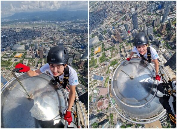他在貼文中表示:天啊徒手攀爬也太危險,太可怕了吧!沒錯這樣想是正常的。不太正常的如我會覺太強大,太厲害了!但是頂尖高手再神再厲害也要有瘋子董事長願意擔當!一般董事長應該已腿軟⋯⋯⋯好我承認我腿很軟(有夠高,我只能站一條鋼圈)但是我就是有勇氣站上去接受挑戰!Team 101 My team讓我們一起完成這個不可能的任務!