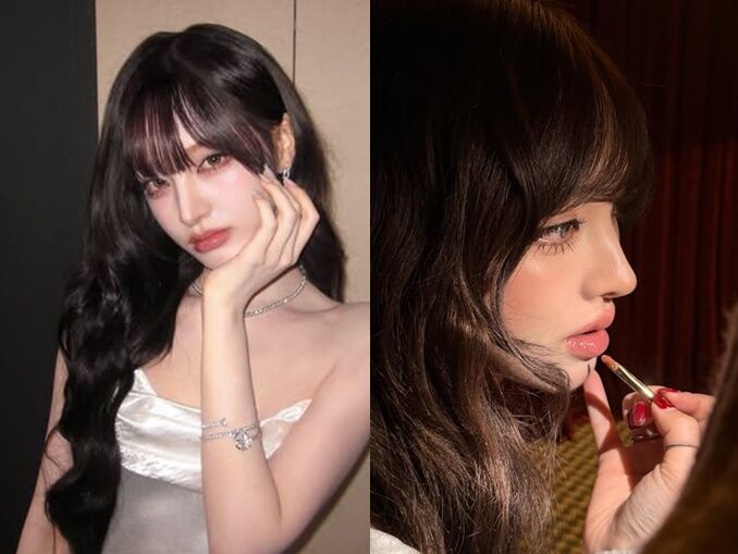 Liz的唇部原本就相當飽滿,現在更透過「疊塗技術」將優點加倍。她捨棄了全霧面的妝感,改以高彩度的水光唇釉為主,並特別強調「邱比特弓(唇峰)」與「下唇邊緣」的過界暈染,讓嘴唇看起來像果凍般晶瑩剔透。這種畫法不僅能縮短中庭,更增添了幾分嬌滴滴的華麗氛圍。