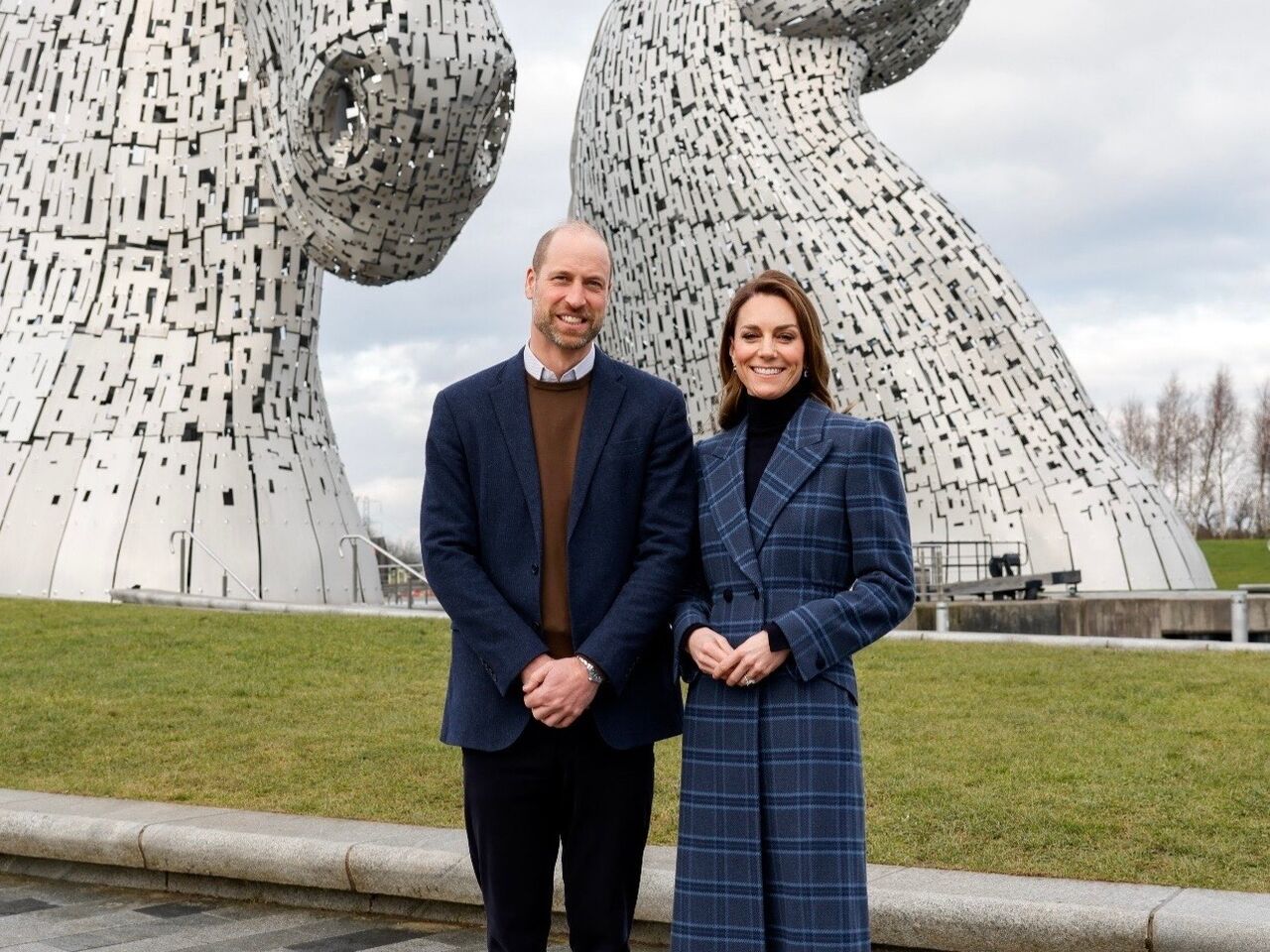 ▲英國王儲威廉(左)與凱特王妃造訪蘇格蘭,首日參觀The Kelpies巨大的鋼鐵馬頭雕塑。(圖/翻攝princeandprincessofwales IG)