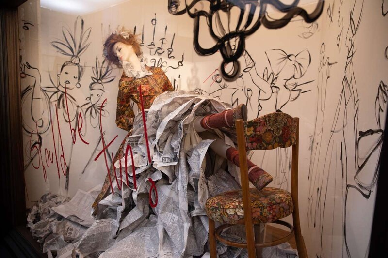 其實這樣的設計理念從劇中 Cruella 的孩童時期就能看出端倪,她還是個小女孩時就喜歡將各種 Pins 別在制服上,甚至是她剛到倫敦 Liberty 百貨做基層員工,因為無法忍受無能主管,私自將無聊的傳統櫥窗改造成有趣且充滿反叛態度的視覺,因此受到時尚圈的關注與設計師的重用,種種跡象展現其反骨不畏旁人目光的時尚態度,也奠定了她在劇中的成功與大膽破格的設計(雖然在現實中是向各個時裝大師致敬,但無疑這些現實中的大師都有著相似特質)。