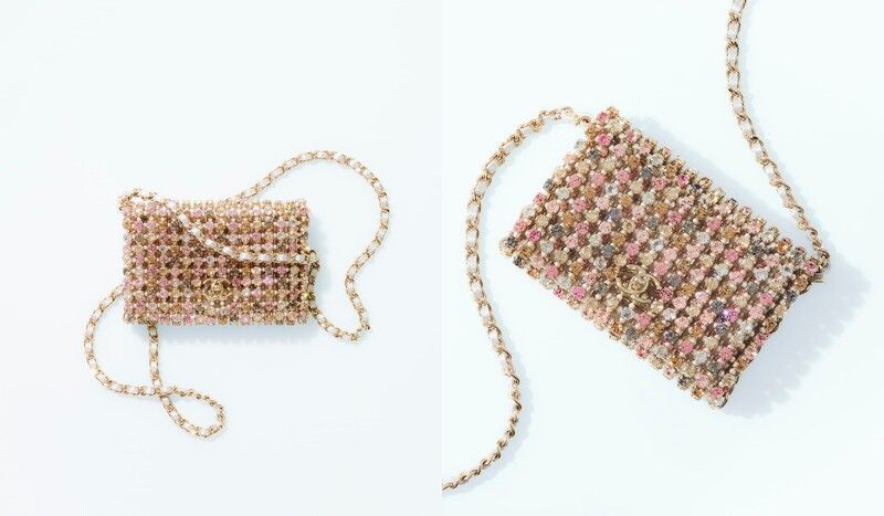 在Chanel 21/22渡假系列登場的新款晚宴包,以水鑽與幻象珍珠所串接而成,細緻的閃光盡顯Chanel貴氣質感。