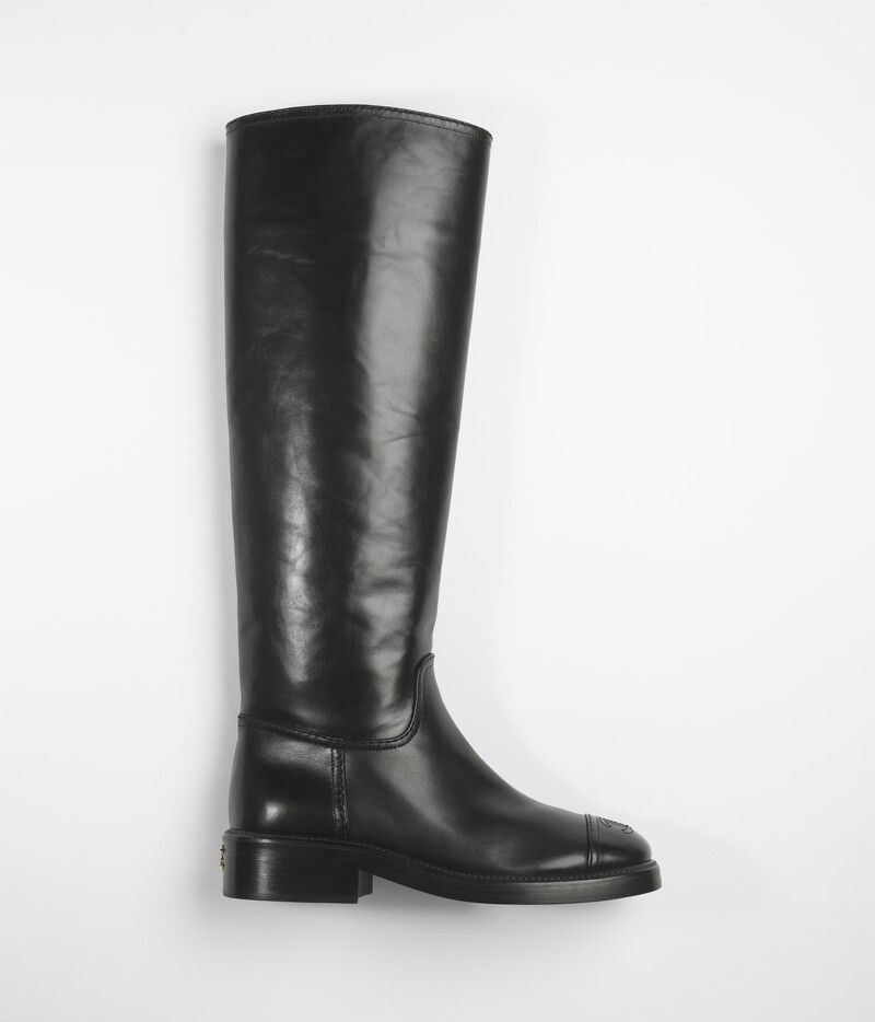首度於秋冬問世的皮革長靴,選用細緻小牛皮革製作,仔細一看,長靴前端繡有Chanel經典雙C標誌,靴款後跟則點綴上金屬雙C Logo,每一處細節都將香奈兒雋永的品牌精神表露無遺。