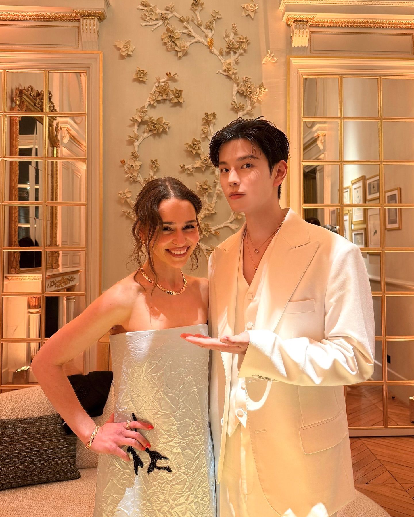CHAUMET今年將蜜蜂與蜂巢意象的經典Bee My Love系列正名為Bee de Chaumet系列,於巴黎時裝周期間舉辦盛大派對,Stray Kids昇玟是座上賓,特別穿白色西裝疊搭Bee de Chaumet兩款項鍊亮相,帥氣指數破表,他也變身為小粉絲,開心與《冰與火之歌:權力遊戲》走紅的「龍后」、英國女星艾蜜莉雅克拉克同框合影。