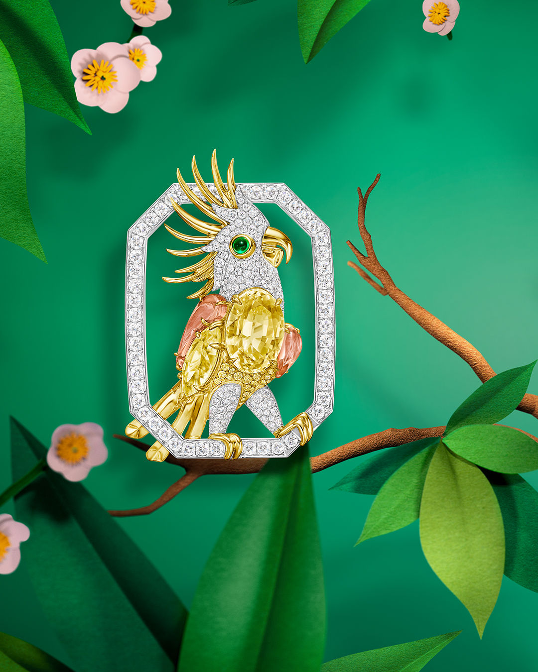 ▲海瑞溫斯頓Marvelous Creations頂級珠寶系列葵花鳳頭鸚鵡胸針。
