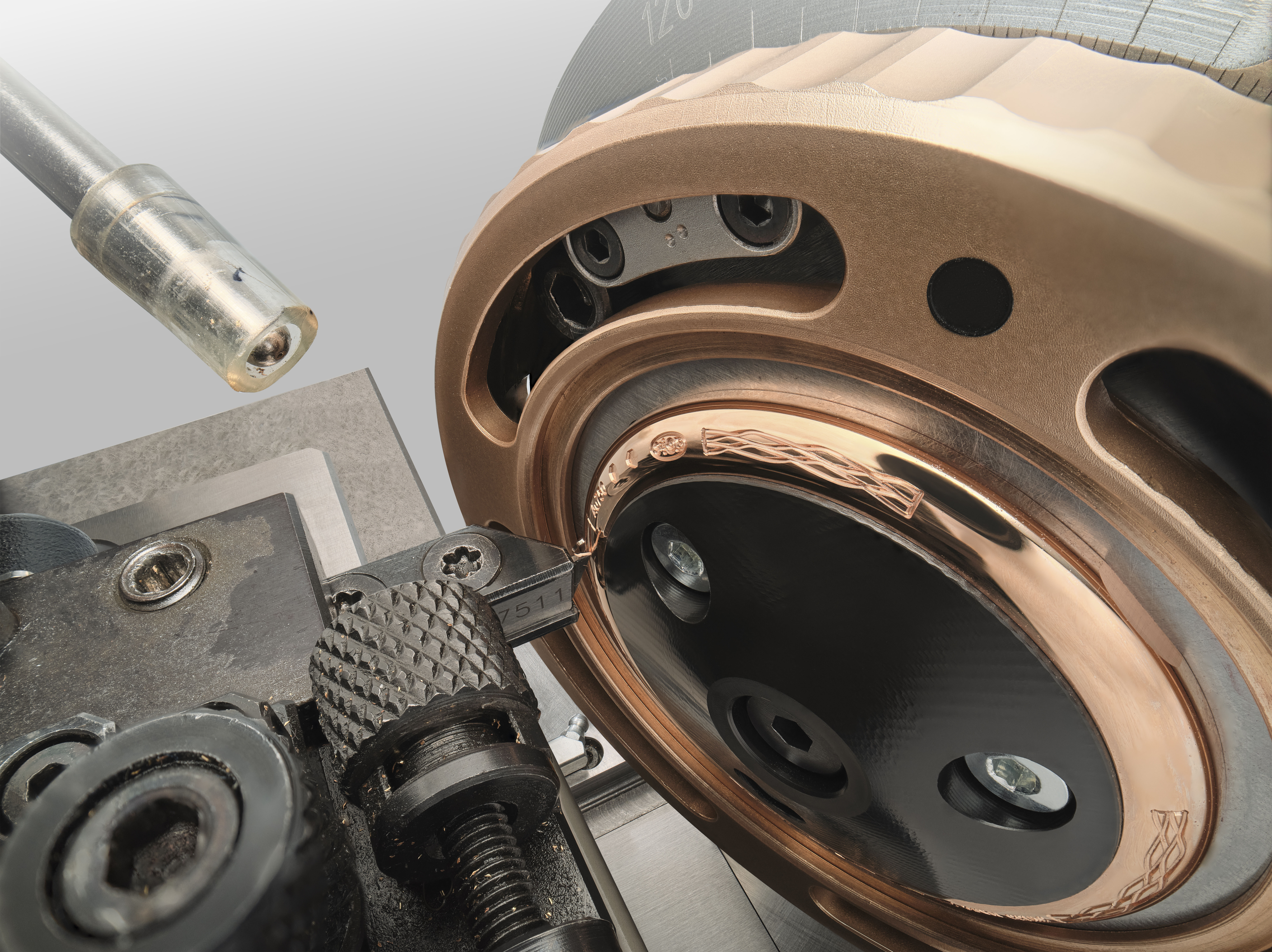 寶璣傳承250年不凡設計與工藝,同時也與時俱進,研發出含有金、銀、銅和鈀金的獨家自製金色貴金屬「寶璣金」,打造錶徑40毫米、厚度10.8毫米的Classique Subscription 2025腕錶的錶殼,展現溫暖細膩的粉紅色調,具耐磨與耐磨特性,且不易褪色,永保純淨優雅。另一亮點是過往寶璣錶殼上的錢幣飾紋,被精緻緞面打磨取代,與原創懷錶相呼應。