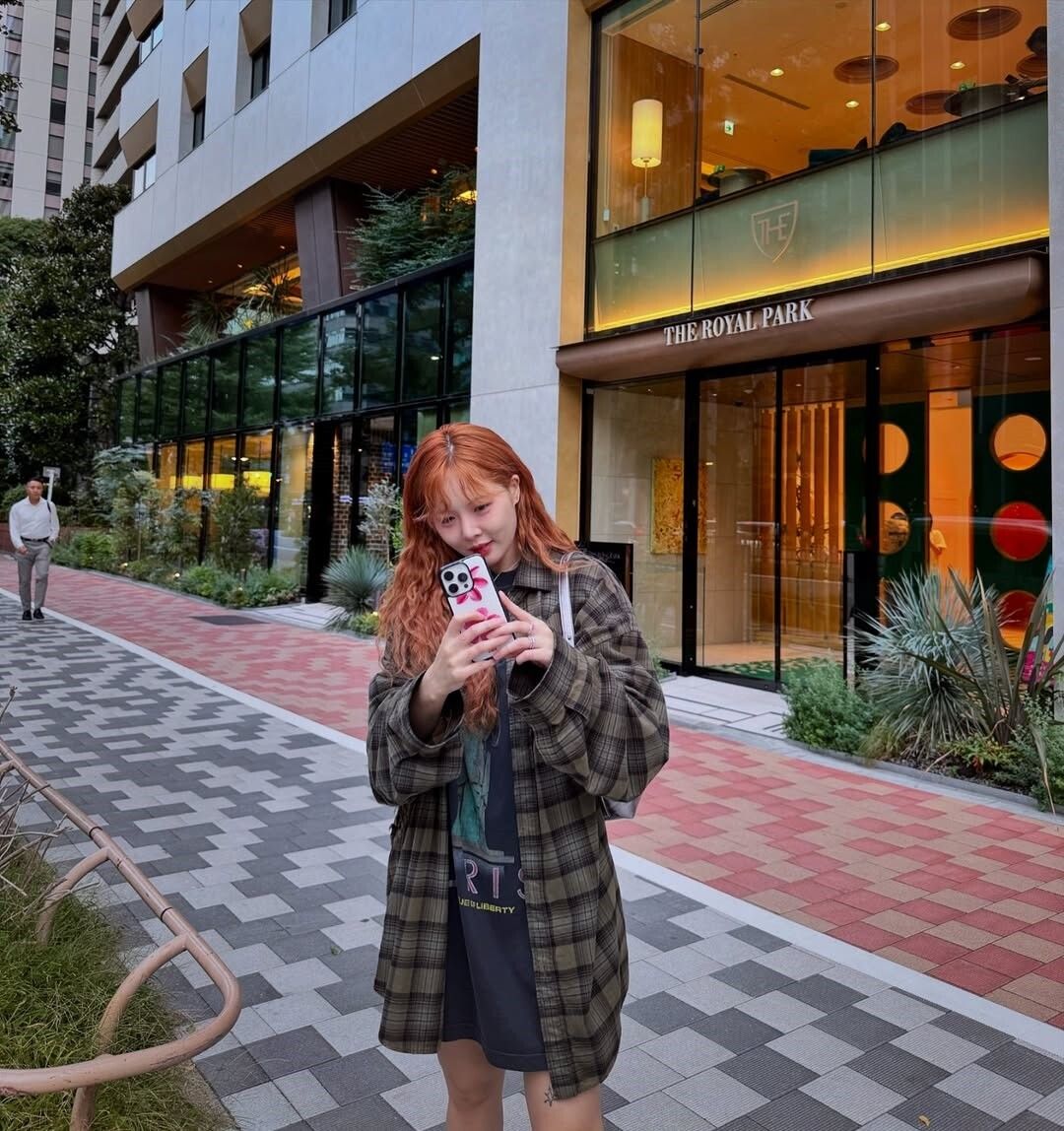 2025春夏染髮顏色女星範本推薦:申有娜-亮眼橘紅漸層