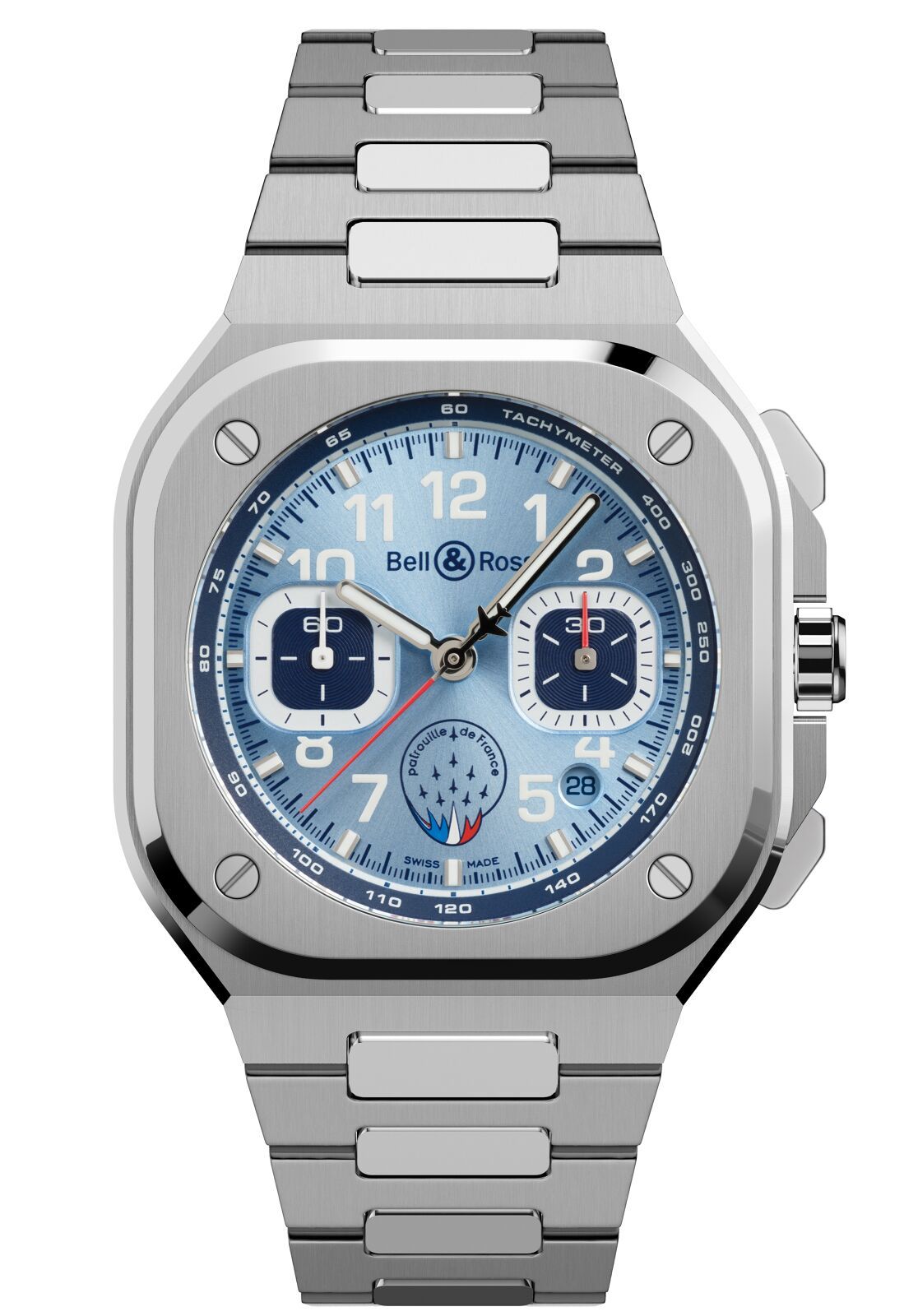 Bell & Ross則與法國空軍巡邏兵飛行表演隊(Patrouille de France)合作密切,第四度為其設計錶款BR-05 Chrono Patrouille de France 計時腕錶,雖然並非軍事行動錶款,但被軍方視為「榮譽」時計,限量製作500 只,選用飛行隊員制服的淺藍色作為面盤主色調,深藍色錶盤邊緣及小錶盤則與戰機機身顏色呼應,而Alphajet戰機造型點綴計時秒針,面盤6時位置與錶背則裝飾菱形隊形標誌,彰顯法國空軍巡邏兵飛行表演隊的特色。