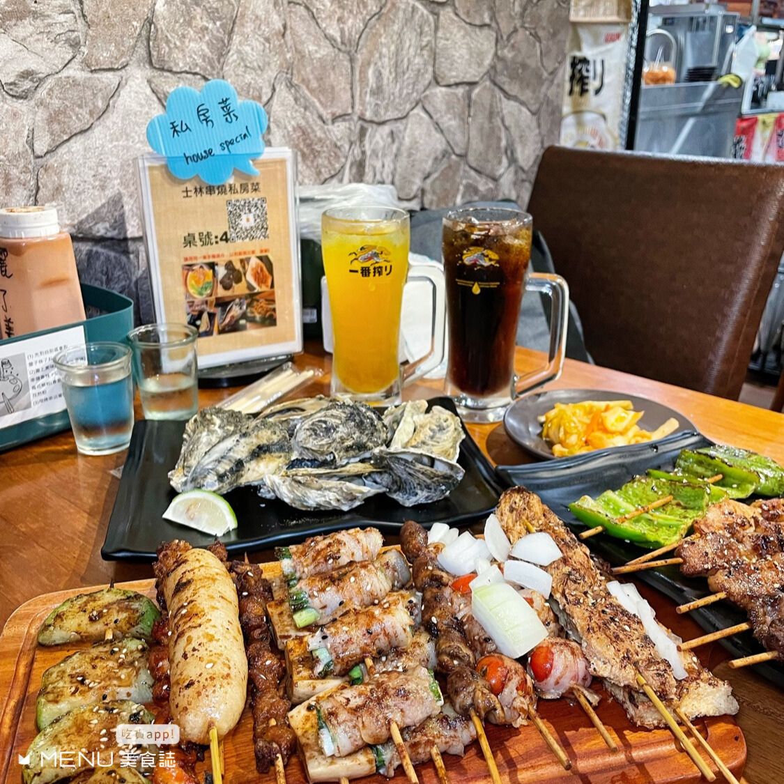在台北士林夜市高CP價格親民、選擇超多樣的串燒專賣店”士林串燒” ,座位寬敞有戶外座、室內冷氣席,串燒部分想吃什麼自己夾取,也有私房菜色掃QR-Code,飲料也是超多樣可以選,也有酒類可以吼搭啦!現場也有活動可以參加送飲料,超適合三五好友聚餐聚會、下班小酌配串或是逛街來歇腳一下,星空頂搭配日式氛圍,整體超Chill。