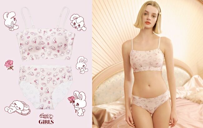 日系女孩看這區!日本內睡衣品牌PEACH JOHN的姊妹品牌GiRLS by PEACH JOHN與日本人氣插畫家foxy illustrations的最新聯名系列超欠穿,以深受時尚圈喜愛的可愛時髦畫風,嶄新繪製出大眼粉色的「原創Bunny兔」,在Peasy無痕細肩帶無鋼圈內衣上登場,不易露出外衣的較寬領口及細肩帶背心式設計,可以修飾背部線條,另一套「荷葉邊睡衣組」以袖口搭配荷葉邊設計,加上短褲兩側的緞帶蝴蝶結,粉粉嫩嫩的在家單穿就可愛到想打卡炫耀!