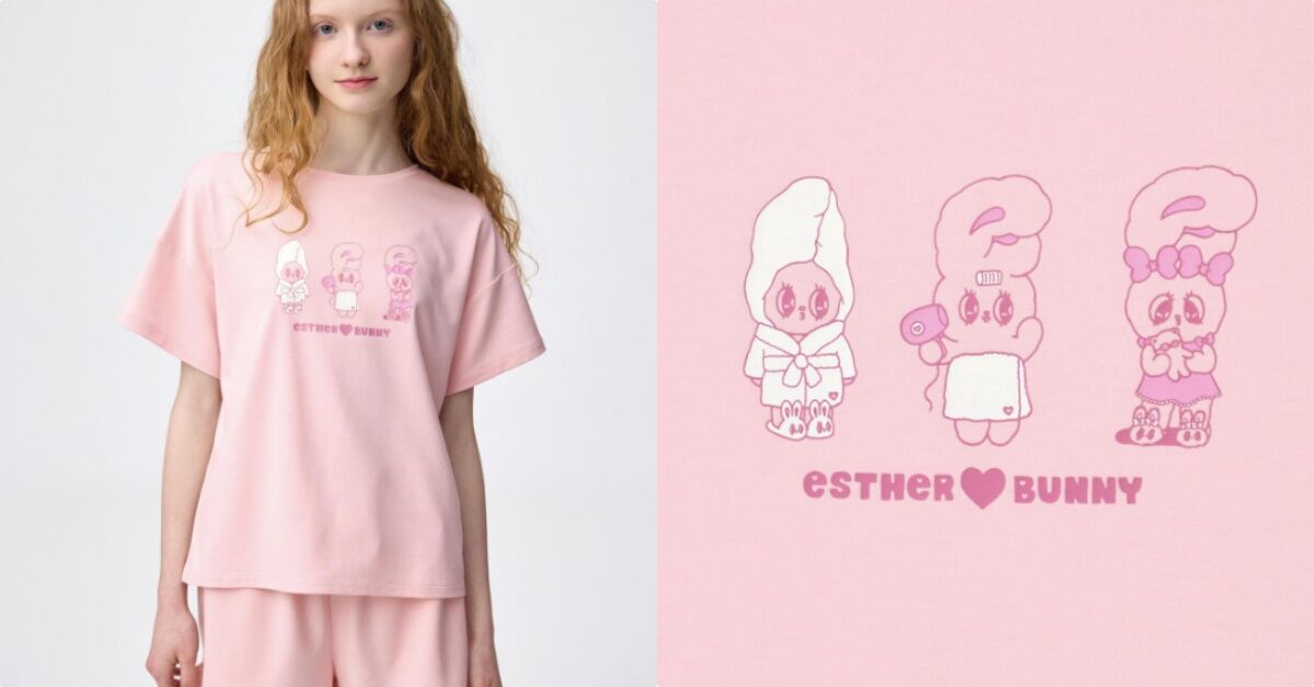 艾絲樂小兔洗香香、艾絲樂小兔睡美容覺、艾絲樂小兔完妝出門…韓裔美籍藝術家Esther Kim筆下的粉紅色小兔居然出沒在日本國民品牌「GU」!?最新聯名系列有3套家居服套裝,以生動可愛的兔兔印花分別搭配海軍藍、薰衣草紫以及草莓奶霜粉,在短褲下擺還有「浪漫荷葉邊」細節,整套收一張千元鈔票有找,CP值太高了吧?
