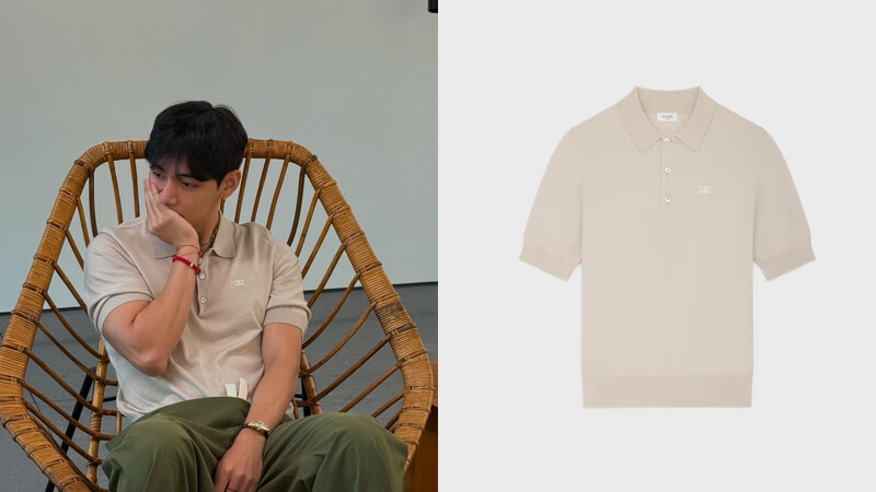 這款POLO衫採用精細棉質面料,呈現淺灰褐色調,展現出低調的優雅氛圍,其經典剪裁設計搭配襯衫領口,短袖和羅紋袖口的細節處理,營造出簡潔而精緻的輪廓,胸前精緻的TRIOMPHE刺繡標誌,呼應品牌經典元素,增添品牌辨識度,三顆CELINE刻字的珍珠母貝鈕扣,細緻地彰顯品牌對細節的追求!