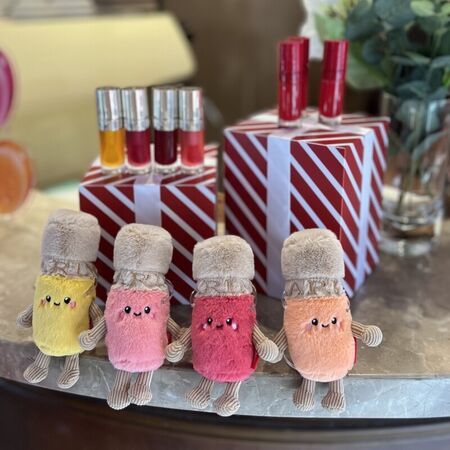 克蘭詩2025年為了慶祝明星商品之一的「彈潤植萃美唇油」10週年,特別將全球熱銷的4大人氣色號(#01、#02、#03、#04)化身為「擬人化美唇油小精靈」,推出限量「美唇油絨毛娃娃」盲盒。
