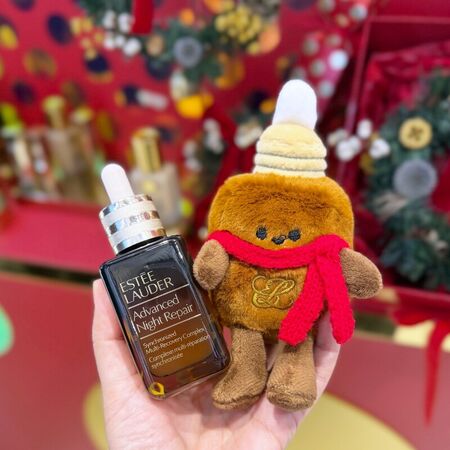 搭上聖誕送禮風潮,雅詩蘭黛小棕瓶也化身超萌娃娃。