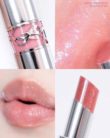 YSL情挑誘光嫩唇凍這是也推出新款限定色了!#10漫光閃粉是晶透裸粉色調,當中加入了細緻閃耀光感,塗抹瞬間為雙唇覆上一層柔潤水光。獨特水光反射效果能修飾唇紋,使唇形看起來更加飽滿立體,妝感清透卻富有存在感,適合打造自然又精緻的光澤唇妝。