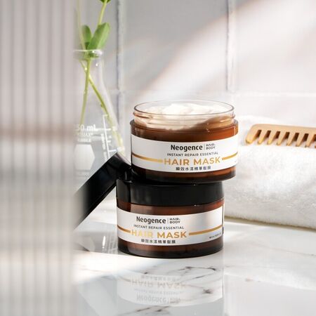 Neogence霓淨思2024年首度推出髮品專業髮肌保養系列,其中的瞬效水漾精華髮膜,以超越微米等級的修護精華深入滲透頭髮及頭皮,添加市場最高濃度1%水解角蛋白,於頭髮表層並於頭髮表層形成薄膜,可調理保濕,幫助改善分岔及損傷。搭配可使髮絲柔順、展現光澤的山茶花油,有感保濕修護不假潤。成分中的維他命B5精華則可調理頭皮健康平衡。