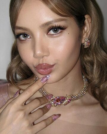 Lisa在2025年艾美獎典禮上的美甲,以透明裸粉為基底,疊加細緻亮粉與水晶般光澤,色調柔和乾淨,讓指尖在燈光下自然透亮、不過度張揚,低調襯托整體典禮造型的質感。