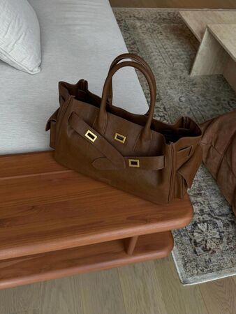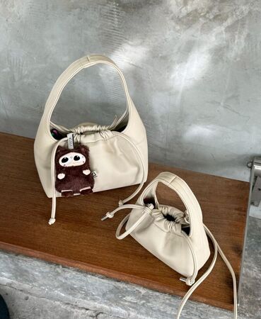 house of littlebunny的人氣商品是TREASURE系列,外型近似愛馬仕的LINDY,包包兩側的手把用於連接背帶,適合肩背或手拿。由於包體較寬,雖然有較大的收納空間,但背在身上的份量感明顯,個子嬌小的人建議選擇小尺寸。