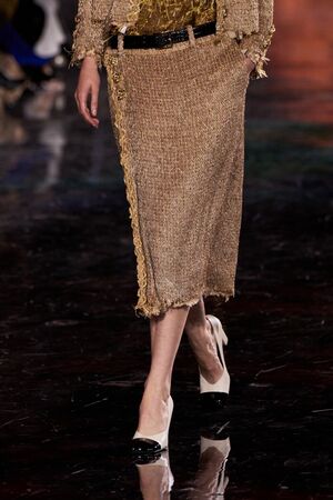 在Chanel 2026春夏系列中,除了斜紋軟呢套裝、珍珠元素等品牌標誌性設計之外,秀場上還有一個細節悄悄吸引不少時裝編輯注意——模特腳上的鞋,這一季Chanel推出全新設計的方頭雙色高跟鞋,鞋型線條俐落,鞋頭呈現明顯的方形輪廓,並延續品牌經典的拼色設計,熟悉的米色鞋身、深色鞋頭語彙仍然存在,但整體比例更現代,也更有時裝感,也是今年春夏相當值得注意的單品。