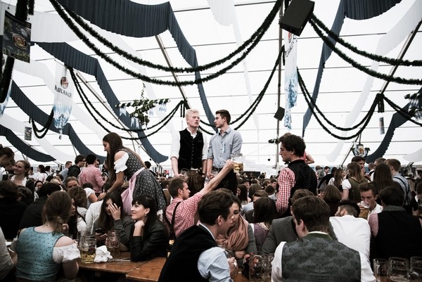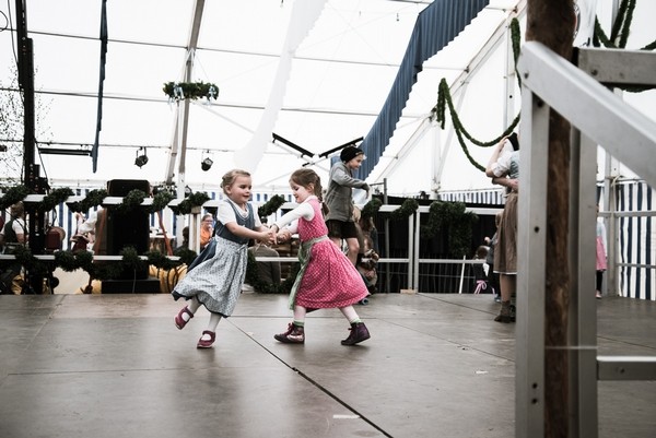這次的活動在白天場表演的是Bachhauser Blasmusik銅管樂隊,到了晚上則請到Cagey Strings樂團表演六零年代的搖滾樂曲。舞台上不只年輕男女跳著團體舞蹈,中場休息時間也有許多孩子們跑到台上玩耍,是個不管年紀族群都可以一起歡樂的場合。也難怪每年盛大的十月啤酒節總是吸引了國際觀光客人潮前來朝聖,不管帳篷內外的風光都十分歡樂。