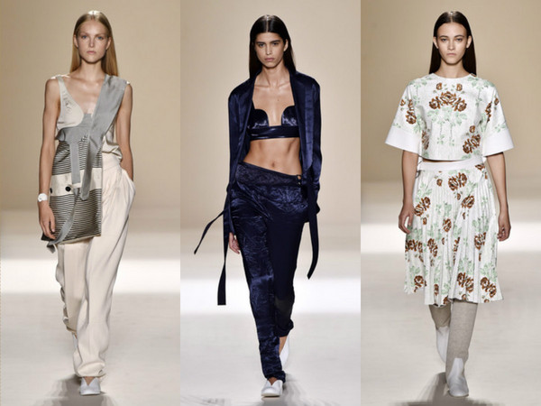 走秀前,大家先為911默哀,接著看到一套套使用天鵝絨、亮段材質製成的服裝,以不規則剪裁、多層雪紡紗設計輪番上陣,搭配亮橘、淡紫、草綠等繽紛色系及春意盎然印花,讓女人露出美胸、馬甲線之際也能柔美時髦,下身則是傘裙、寬褲,讓新世代女人展現性感同時也能很瀟灑。