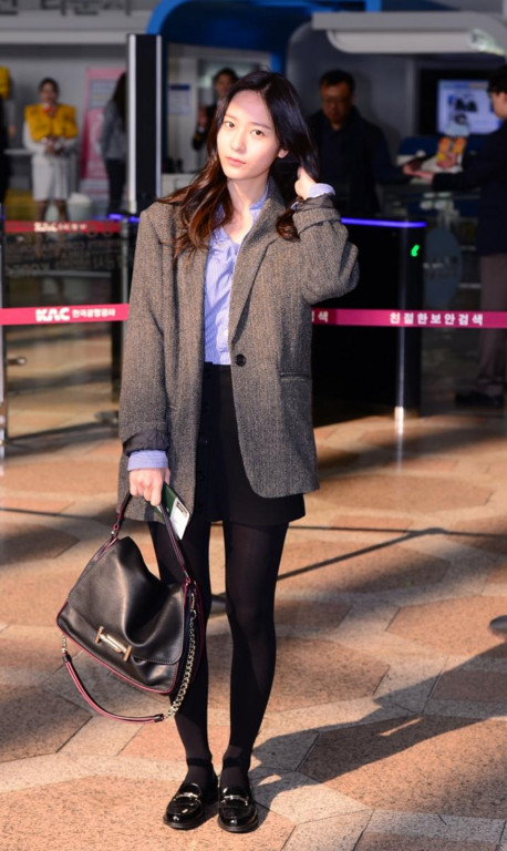南韓女星Krystal鄭秀晶,日前穿上長版西裝夾克,搭配襯衫小短裙,輕正式風格剛好適合OL學習,這樣的打扮穿進公司莊重,下班後跟朋友約吃飯,脫掉外套有俏麗感。