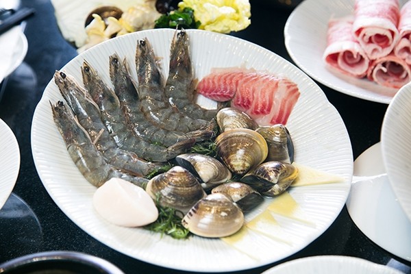 ▲冏男蝦以及特選蛤蠣、干貝、鯛魚片是最完美的海鮮組合