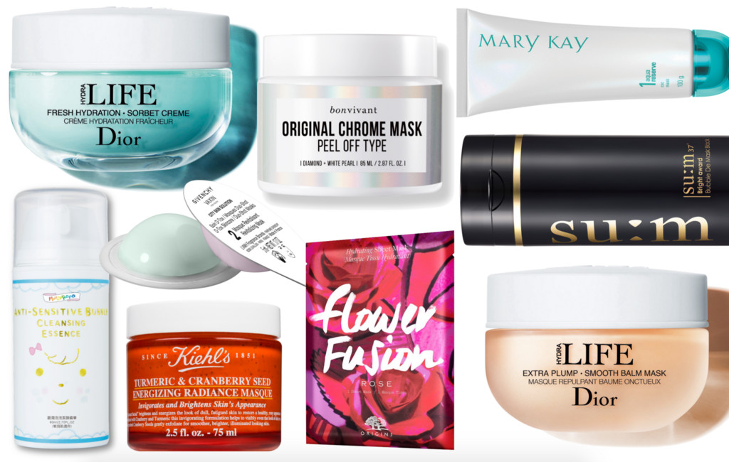 ▲迪奧花植水漾精華凝霜、美膚娜娜淨潤泡泡潔顏精華、紀梵希青春激活防禦雙效面膜、Kiehl's莓果薑黃精萃亮面膜、bonvivant美少女鋼鐵面膜、品木宣言花萃精油面膜-玫瑰、玫琳凱海洋精粹1號面膜霜、sum37微米珍珠淨白控油黑泡泡面膜、迪奧花植水漾Q彈面膜。(圖/各品牌提供)