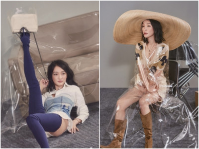 周迅很會演戲,用在拍時尚大片上也一樣,登上大陸《marie claire嘉人》雜誌封面,看得出演得用力,一下像棵孤寂的樹、一下被透明塑膠..