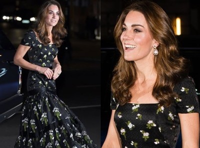 凱特王妃真的是舊衣新穿的時尚代表!出席英國國家肖像美術館派對時她身穿Alexander McQueen黑色印花洋裝,雖然這套長洋裝201..