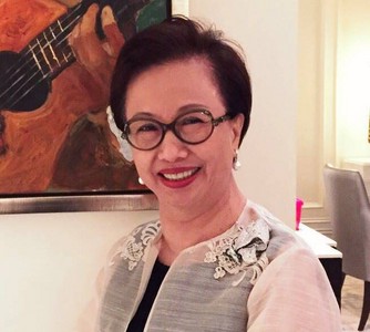 前副總統蕭萬長攜夫人朱俶賢於日前出席APEC馬尼拉會議,朱俶賢將ANNA HU 2015年度代表作蝶樂系列中的《太極蝴蝶》閃耀於肩上,極..