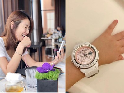 哎呀!這是誰的可愛小手戴著BABY-G的Hello Kitty聯名錶?原來是林心如與霍建華的2歲女兒小海豚,林心如開心在IG秀出「傳說中..